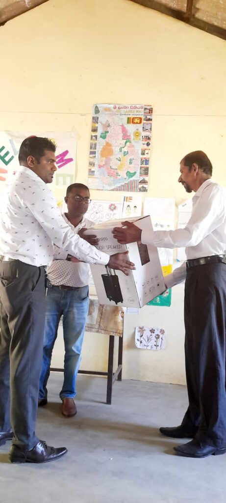 The donation included a cupboard and books to help establish a school library, plastic chairs for administrative use, model exam paper books for Grades 1 to 5, and a Bluetooth speaker with a microphone to support interactive learning.
